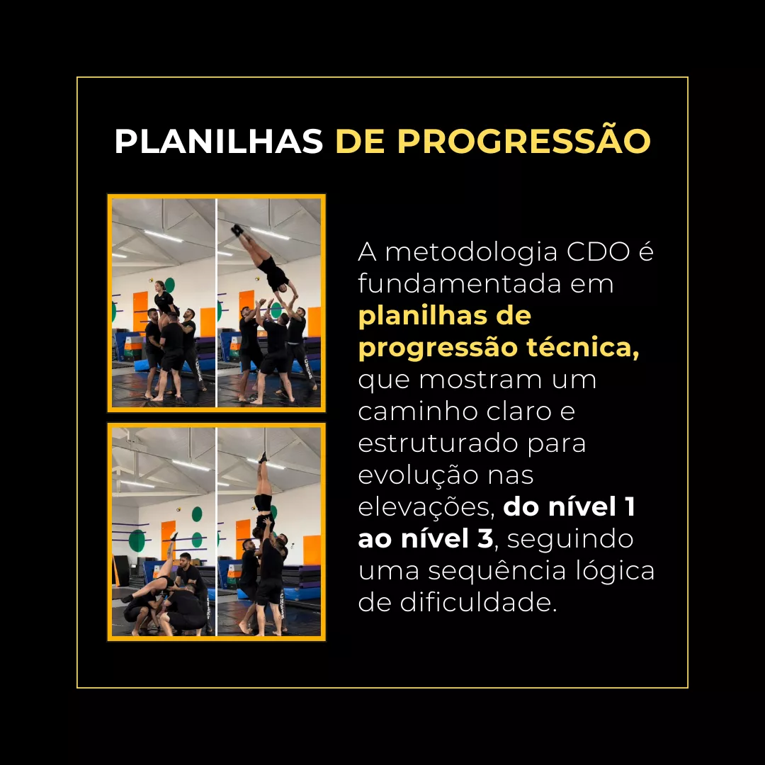 Se você está começando do zero, sem nenhuma experiência com cheerleading, aqui você vai encontrar o passo a passo para desenvolver uma técnica consistente de maneira rápida e segura, seguindo uma progressão lógica que construirá a base das suas habilidades. Vai aprender cada detalhe para evoluir nas elevações.
